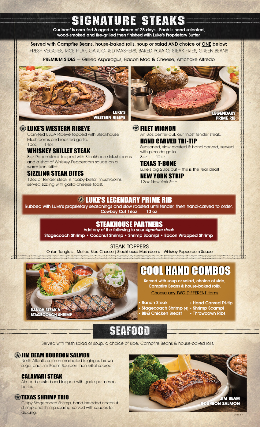 Cool Hand Luke’s Steakhouse Menu